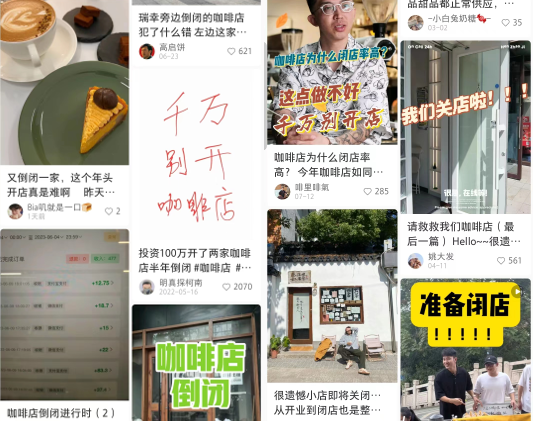 无独有偶,在小红书上,有投资30万3个月倒闭的咖啡店;有开业6天,总营业额600元的独立小店,甚至还有开业不到半年到急于转让的知名品牌加盟店……对于这些创业者来说,在创业的路上,他们见证了繁荣,经历了崩溃,最终留下的是教训。