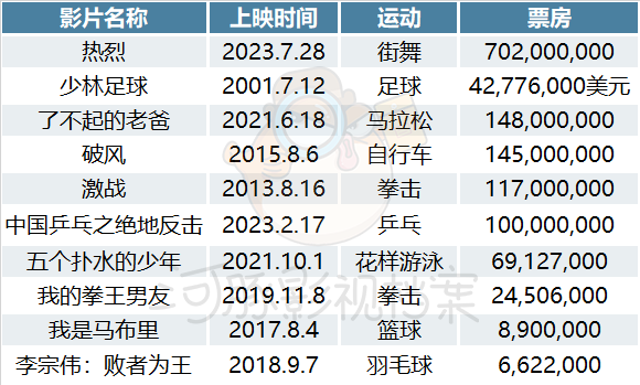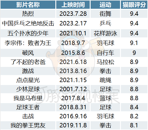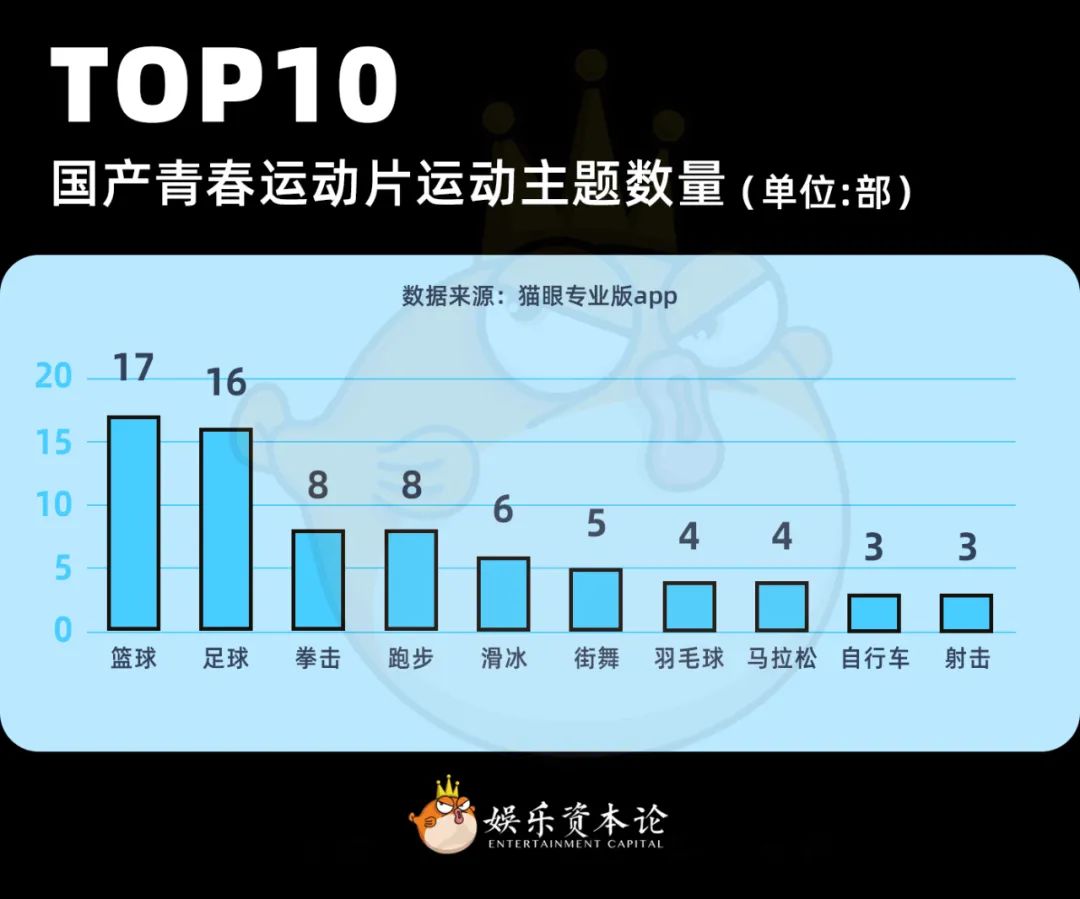 (注:仅统计猫眼专业版资料库“运动”“青春”分类下30分钟以上的影片,不包含纪录片)