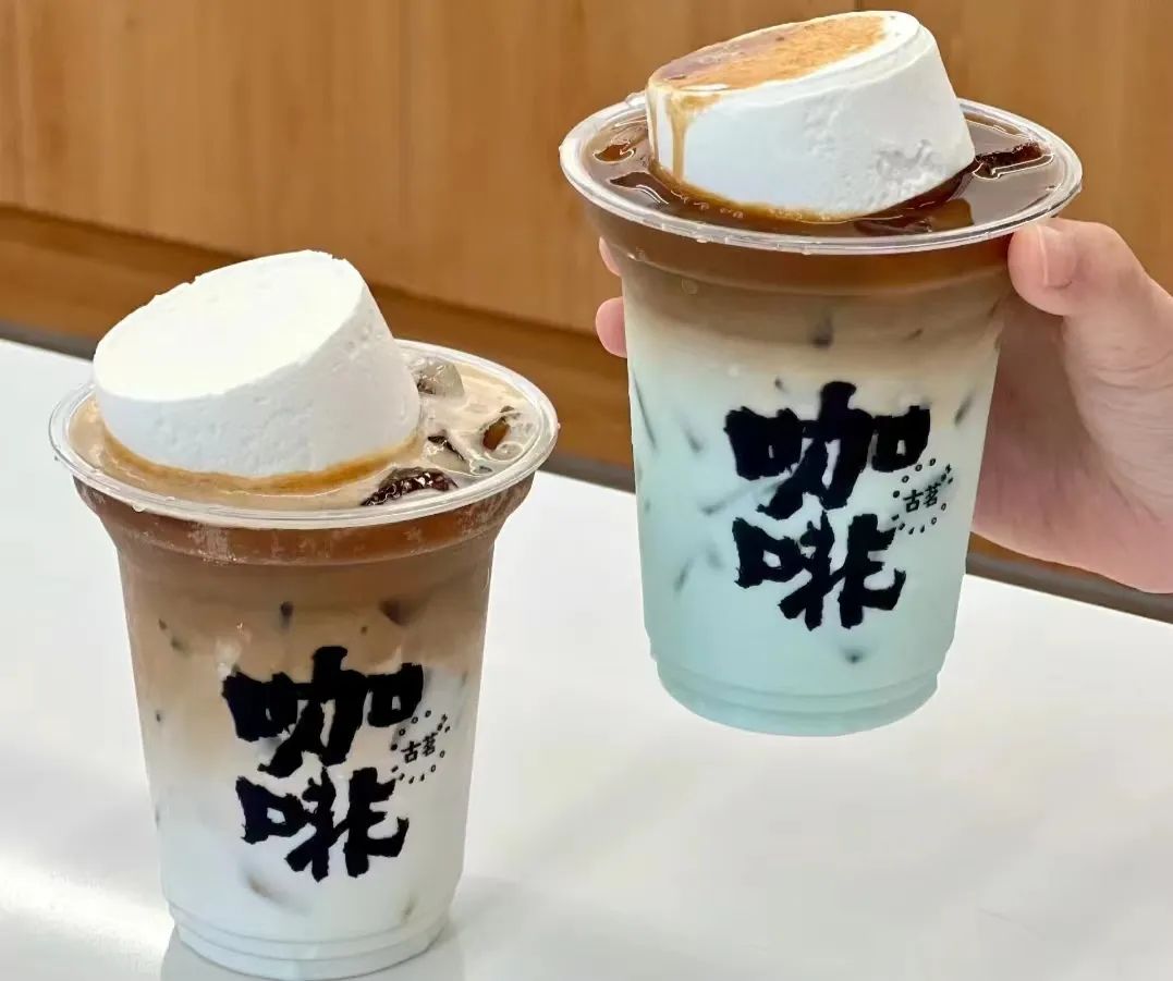 古茗最近上新的薄荷拿铁冰淇淋和生椰拿铁冰淇淋,顶部加了一大块奶砖,也是上线即火爆。