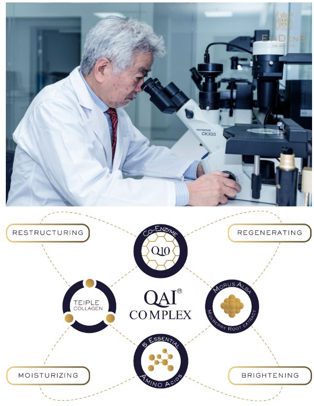 在技术方面,EviDenS de Beauté伊菲丹以其专为敏感肌定制,专业对抗肌肤衰老的技术而闻名。为了呵护妻子美丽却敏感的肌肤,完成品牌的卓越愿景,查尔斯花费7年时间寻遍日本优秀生物学家,与生物技术领域最有才华的科学家之一、应用生物技术博士- 石桥教授合作开发产品系列,秉持日本文化中根深蒂固的“改善”理念(日文为 Kaizen),即追求完美永无止境。最终,在石桥博士团队与北海道大学研究小组和日本国立科学研究所的合作下,以肌肤自身胶原蛋白为灵感,创造出 TripleCollagen® - 三重胶原肽,更运用先进的科学和技术成就,结合了三重胶原肽和其他三种超强的活性成分,创造出 QAI®复合物,具有独一无二的表皮渗透能力和生物活性,真正做到为敏感肌抗衰。