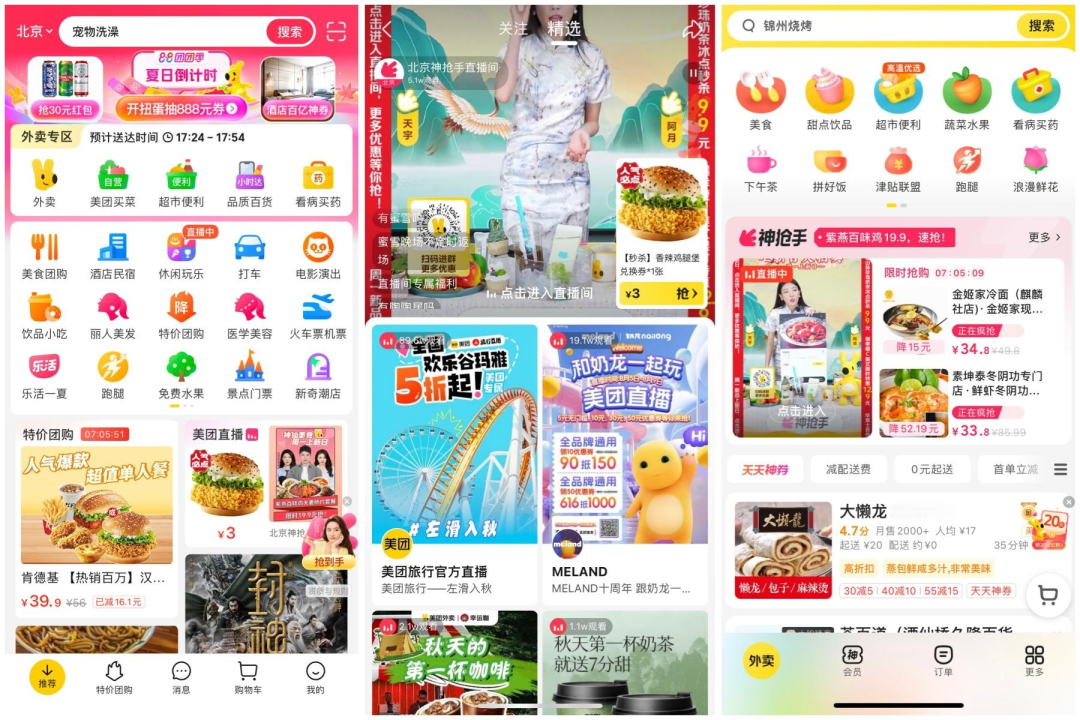 早在2020年,美团就曾先后推出旅行直播、袋鼠直播以及美团Mlive直播三大板块,又在2022年推出美团直播助手,补齐直播基础设施,并在直播中添加了团购、外卖等功能。虽动作频频,但在美团内部,直播战略地位尚未提高。尤其是2022年下半年后,即时零售成为美团新业务的主要抓手,“直播”的身影又暗淡了一些。