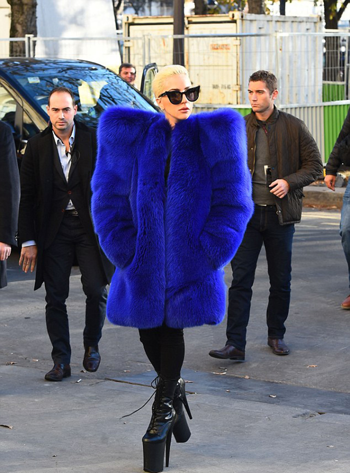 Lady Gaga是今年维密内衣秀的表演嘉宾之一,当地时间11月29日,Gaga前往巴黎大皇宫参加彩排,她穿了一件造型独特的亮蓝色皮草外套,一路上吸睛无数。