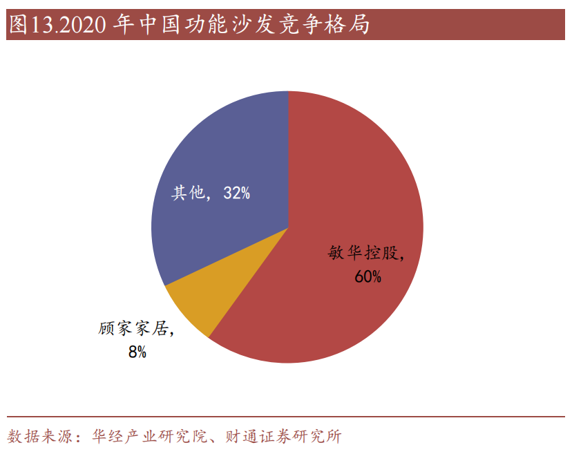 功能沙发是敏华最为擅长和深耕几十年的领域,顾家家居沙发业务最早以皮类沙发起家,近年来通过并购的方式开始涉足功能沙发。
