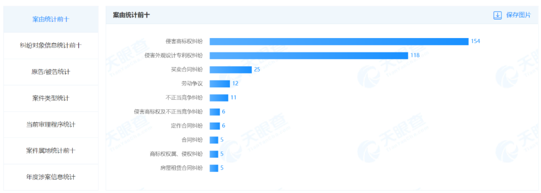 天眼查资料显示,顾家家居涉及的司法案件超过400起,其中侵害商标权纠纷案件达154起,侵害外观设计、专利权纠纷118起,这两类案件是顾家家居所涉司法案件的主体。