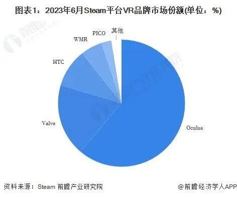 (2023年6月Steam 平台VR品牌市场份额 图源:前瞻产业研究院)