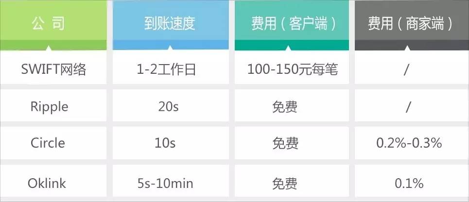 从到账速度上来讲,区块链公司已经能做到实时转账。 Ripple区块链帮助的全球第一笔区块链国际银行间汇款,在加拿大Alberta的ATB 银行和德国Reisebank之间达成,总共花费20秒。而Oklink的到账速度在5秒到10分钟之间。