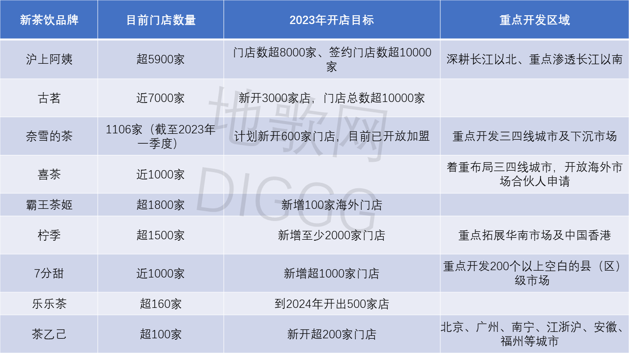 自今年年初以来,沪上阿姨宣布2023年营业门店数将突破8000家、签约门店超10000家;古茗今年计划再新增超3000家门店,总门店数突破10000家。