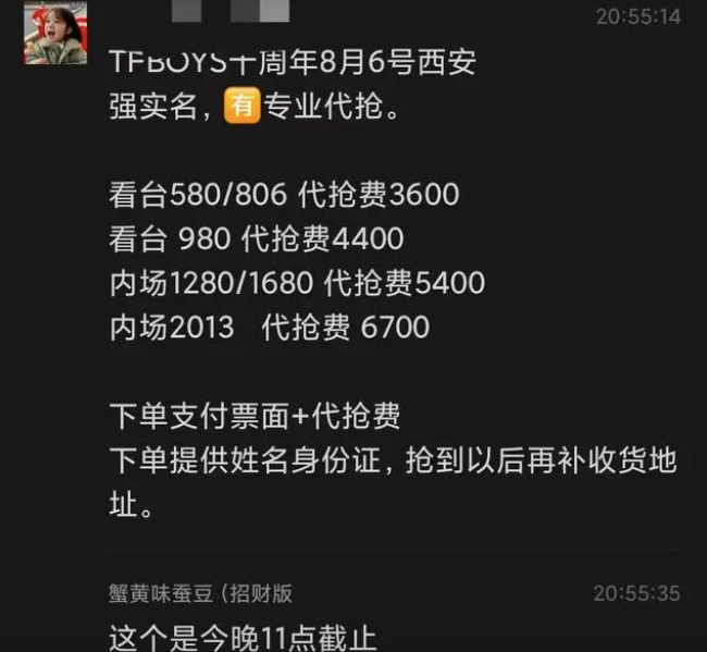 这场十周年演唱会的乱象太多,除了粉丝们在线下的种种操作,原本实行强实名的演唱会,也有粉丝反应现场不需要人脸识别就能进入,包括“邀请函”的存在,都显示出了这场备受关注的演唱会仍然存在黄牛、天价票的现象。
