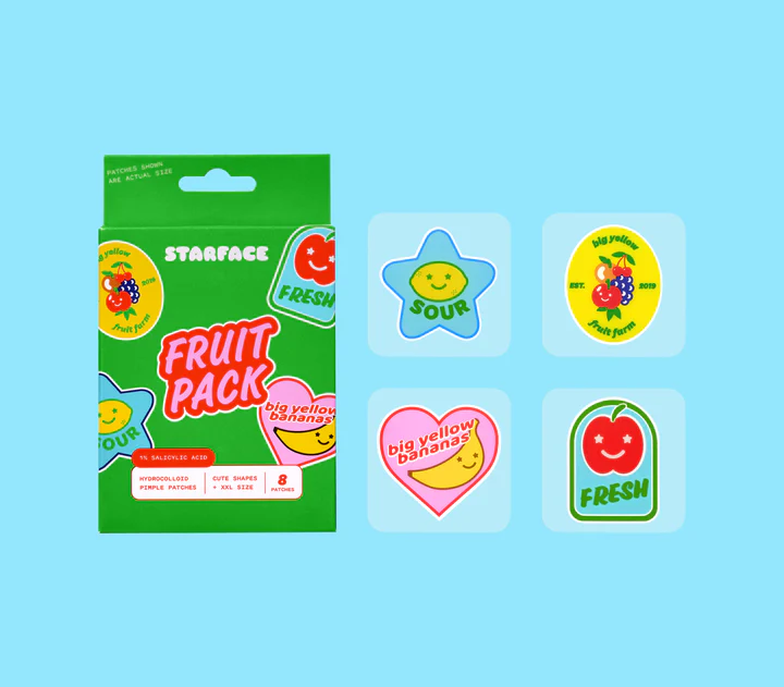 针对消费者背部和臀部的祛痘需求,祛痘品牌Starface推出了第一款水果形状的身体痘痘贴,这一痘痘贴是常规尺寸Hydro-Stars的四倍,有助于一次消除多个痘痘。