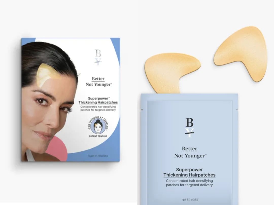 最近,针对头发老化的护发品牌Better Not Younger推出了一种解决头发稀疏和脱发问题的新产品:M型贴片。Better Not Younger的创始人松所勒斯·冈萨雷斯(Sonsoles Gonzales)在了解到女性脱发经历后,推出这一新型超级增厚防脱贴片。