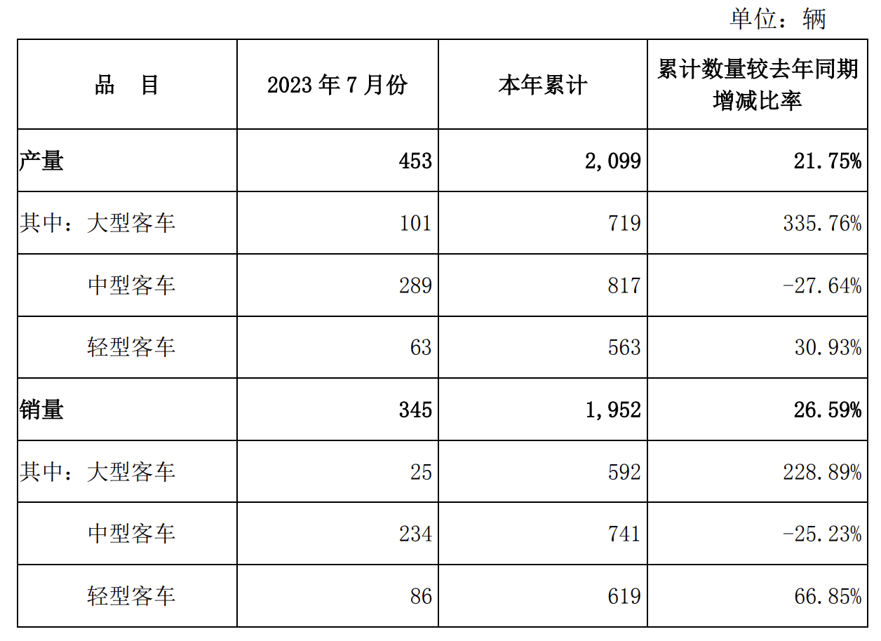 安凯客车8月8日公告,7月销量合计345辆。本年累计销量1952辆,同比增长26.59%。