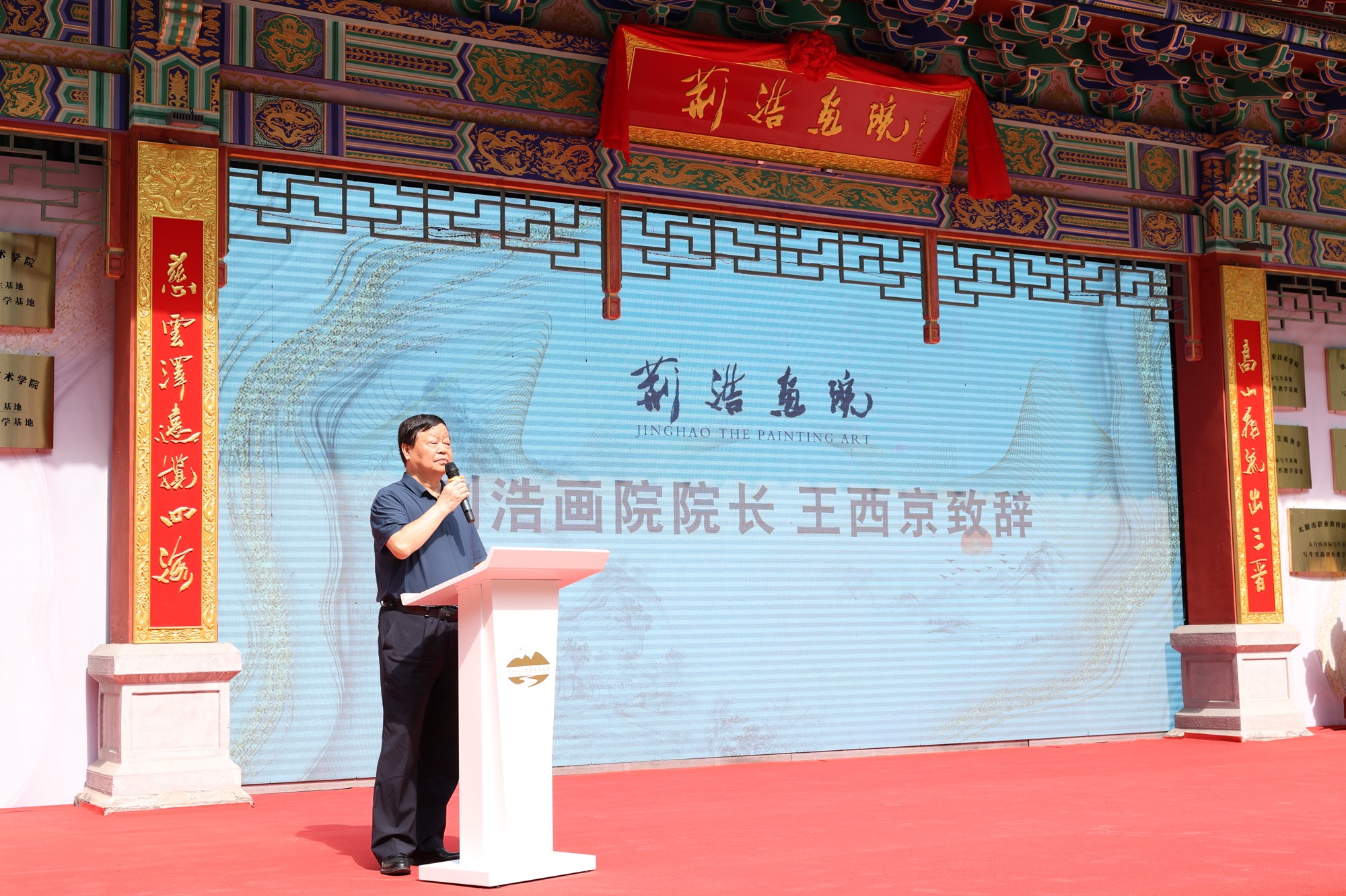 长治市委常委、宣传部部长孙刘琳为荆浩画院成立揭牌。据介绍,荆浩,字浩然,自号洪谷子,山西沁水人,是五代后梁最具影响的山水画家,是我国学术界、艺术界公认的北方山水画鼻祖,是山水画水墨理论的倡导者、实践者,是我国古代的“山水画圣”, 著有《笔法记》,存世画作《匡庐图》。荆浩作为北方山水画创作宗师,在中国美术史上占有极其重要的位置,至今在海内外艺术界仍享有崇高声誉。荆浩画院因为荆浩隐居太行山洪谷一带而得名。2022年,澳门澳涞坞集团与壶关县政府、山西传媒学院历时一年筹备和建设,成立了荆浩画院。