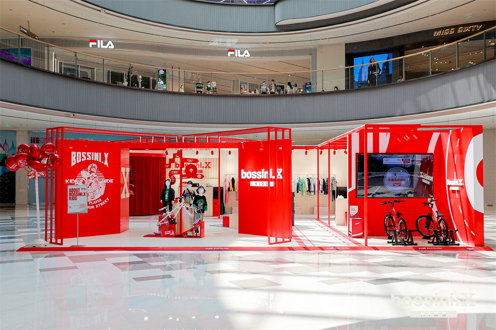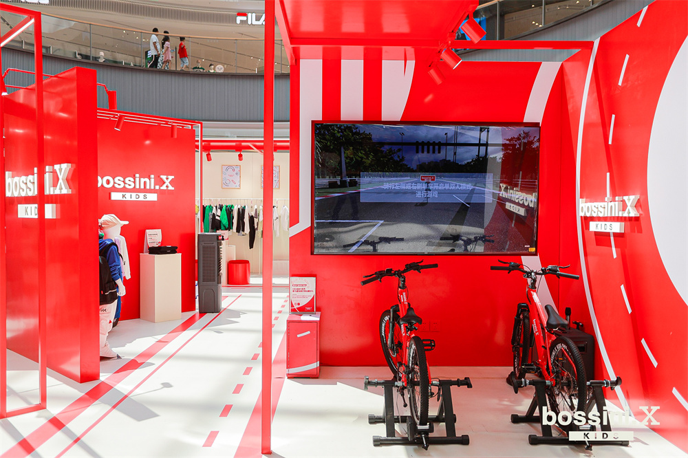 作为儿童骑行运动生活方式的引领者,bossini.X KIDS今年8月于南京万象城开启为期15天的骑迹快闪活动,快闪店设计灵感来源于骑行运动,选用最具代表性的自行车及赛道元素,同时运用品牌标志性红色做装饰,带来极具冲击的视觉效果,旨在鼓励每位小骑士们在骑行中直面困难与挑战,享受赛道追逐,体验突破圈数的极限,自由穿行。