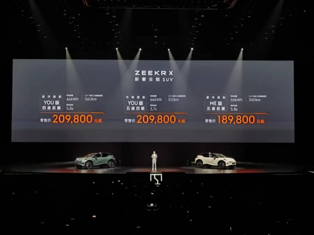 同时,吉利旗下极氪在4月12日迎来了第三款车型极氪X上市,推出售价18.98万元的五座后驱版,20.98万元的五座四驱版和20.98万元的四座后驱版车型。