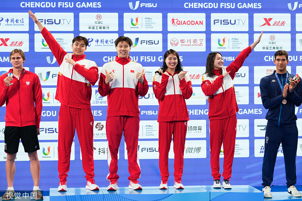 在本届大运会上拿下8块金牌的李冰洁,也是2020东京奥运的金牌运动员,但存在感却不高,主要是因为她手中的这枚金牌来自集体项目——4x200米女子自由泳接力。
