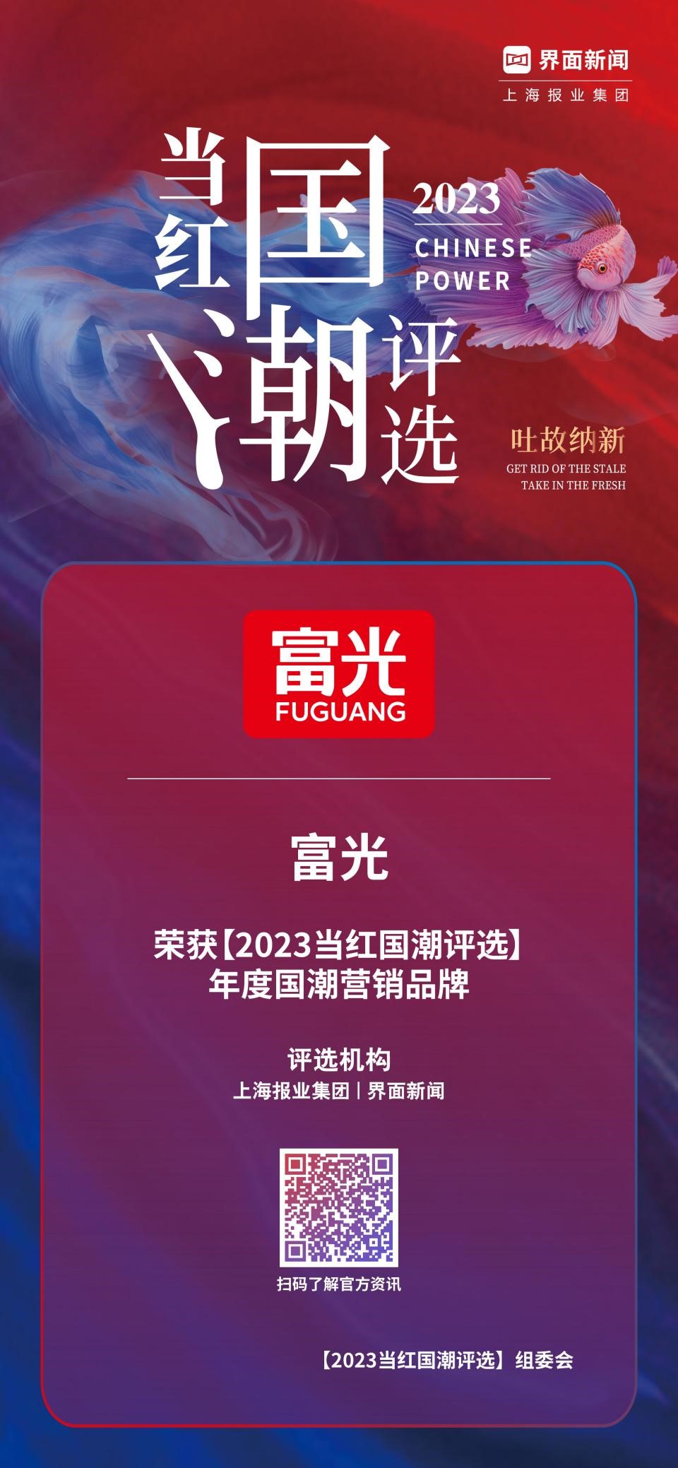 富光,长期以来专注产品技术创新,引领饮水健康升级,践行着国货品牌助力健康美好生活的责任,以多元营销模式赋能发展,开启“国潮之路”。当之无愧荣获【2023当红国潮评选】年度国潮营销品牌。