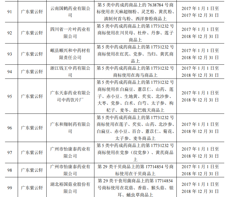 (大参林及子公司广东紫云轩的商标许可,来源:招股书)