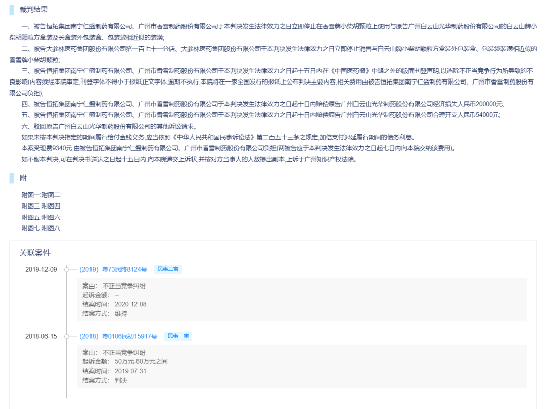 消费者会看到大参林平台上销售的广州市香雪制药股份有限公司的“香雪牌小胡柴颗粒”,侵犯了广州白云山光华制药股份有限公司的“白云山牌小胡柴颗粒”的方盒装及长盒装外包装盒、包装袋的装潢。这对大参林的品牌力是很大的磨损。