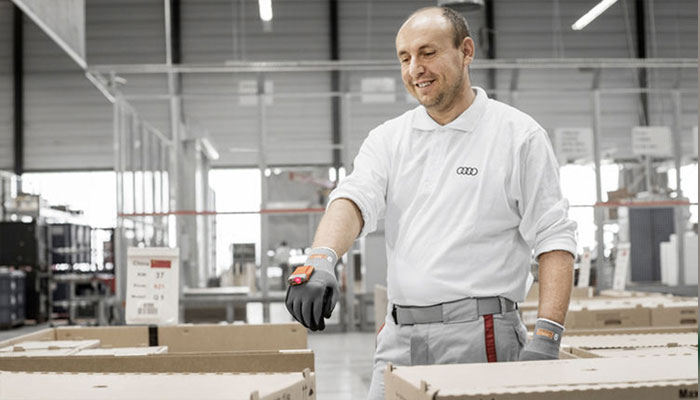 奥迪因戈尔施塔特工厂里的物流工人们十分幸运,因为奥迪发明了一种名为“ProGlove”的手套。这种手套内部安装了条形码扫描器,可以腾出工人的一只手并且大幅提升其工作效率。在进行了为期四周的试验期后,这款ProGlove手套正式地运用在了该工厂的5个不同工位上。