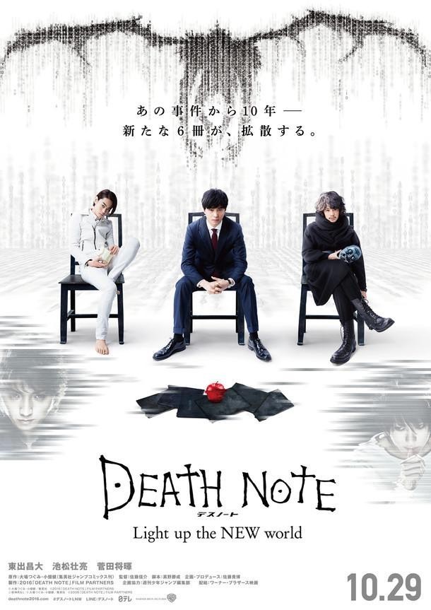 《死亡笔记 Light up the NEW world》是电影版《死亡笔记》续集,时间线是“基拉”夜神月和L去世十年后,死神再次把死亡笔记投放到地面上引爆了全球性的混乱,号称L正统后继者的龙崎(池松壮亮 饰)在经过对案件的分析之后,判断出人间一共有六本死亡笔记——此部电影由东出昌大、池松壮亮、菅田将晖等主演。