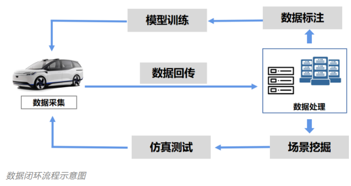 其具体环节包括数据采集、数据回传、数据标注、模型训练和仿真测试等。