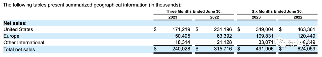据财报,2023年Q2净销售额2.4亿美元,同比去年的3.157亿美元,下降了24.0%。今年上半年,公司净亏损扩大到1.37亿美元。