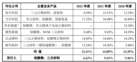从目前正极材料上市公司看,2022年厦钨新能、容百科技(688005.SH)、振华新材(688707.SH)、长远锂科(688779.SH)、当升科技(300073.SZ)主营业务毛利率分别为8.48%、8.58%、13.24%、14.05%、17.22%。