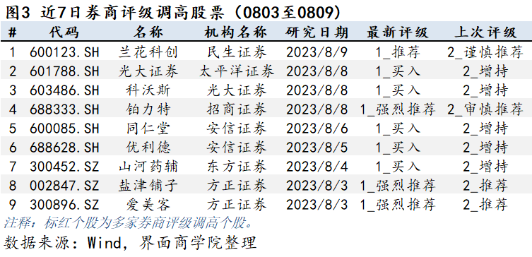 数据显示,近7日有9篇研报对9家A股公司评级进行上调。