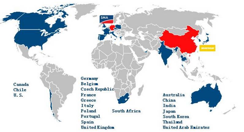 事实上,目前SMA中国·兆伏爱索已是国内行业具有最为完整和丰富的光伏逆变器产品系列的企业,拥有1kW至1MW全系列光伏并网逆变器产品。其生产的集中型光伏逆变器,已广泛应用到国内沙漠、滩涂、高原等地域的大型光伏电站系统。组串型光伏逆变器已行销海外数十个国家和地区,把太阳能带给了全球用户。