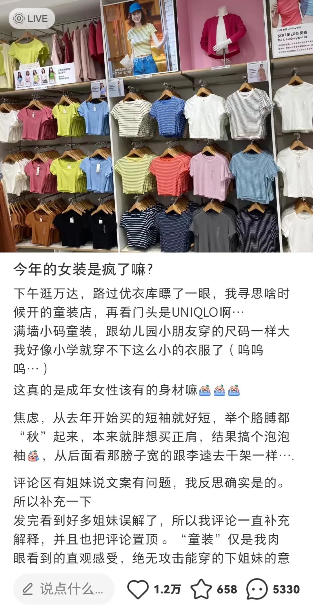 何况靠辣妹装和女团风爆火的品牌,本身的天花板是很低的。因为腰围 59 的成年女性本身就是少数。而过度鼓吹以瘦为美和身材焦虑,则会给品牌带来负面效应。