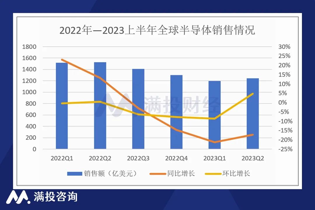 根据美国半导体协会的数据显示,2023年第二季度全球销售额1245亿美元,同比下降17.3%,环比上升4.7%,相比上一季度有所增加,但还未恢复到2022年初时的状态,难以实现当前业绩预期。