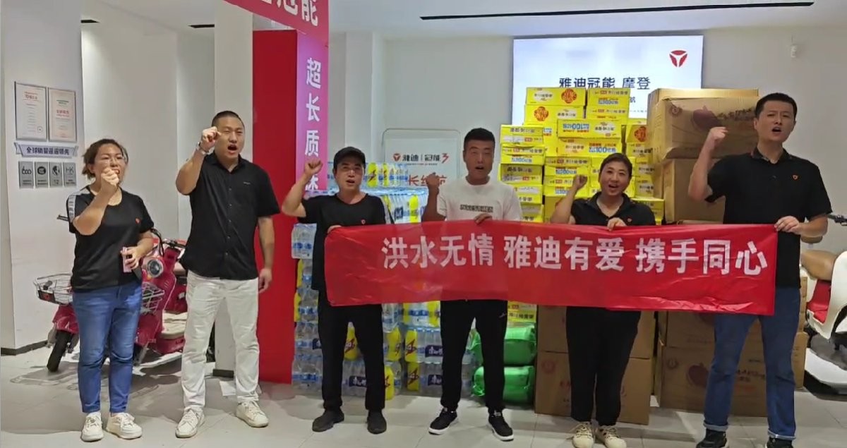 在多方救援队驰援受灾区的同时,周边及当地部分组织也在积极行动,雅迪就近协同京津冀区域的多家经销商迅速组织救援团队并筹备物资开展抗洪救灾,尽可能的帮助当地受灾群众即时缓解困难。