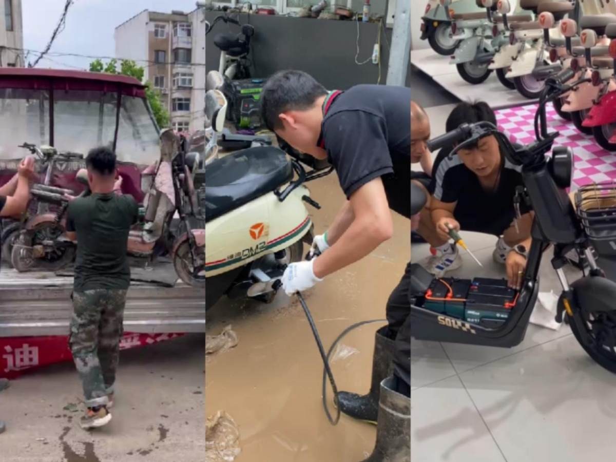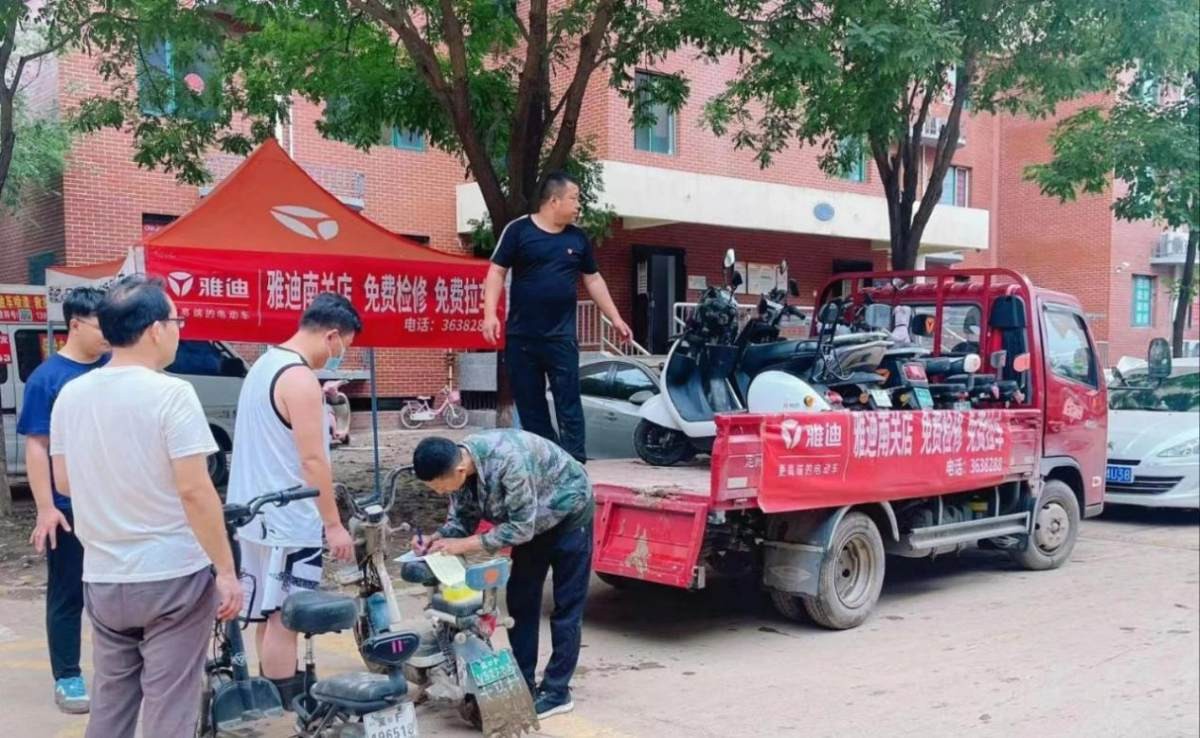 洪灾的肆虐,很多群众的电动车因浸水存在安全隐患,道路两旁也常见各种被冲乱的电动车。对此,雅迪不仅推出了电动车到店免费检修(不限品牌、型号)服务、10元以下配件免费更换*等服务,还组织了“招手即停”救援车队机动提供检修换新服务,并以小区为单位陆续开展上门服务。目前,雅迪已帮助用户维修车辆近千台,最大程度降低灾区群众修车换车的经济负担,助力快速恢复正常生活秩序。