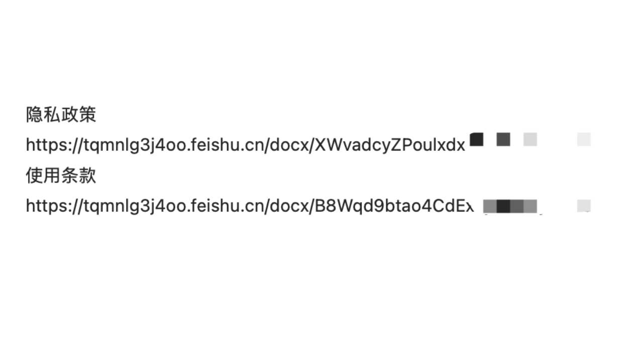 有趣的是,由于苹果应用商店的规定,所有上架的App都必须包含详尽的《用户协议》和《隐私政策》等开发者信息。对此,许多“FleeceGPT”为了节省精力,选择将这些内容托管在诸如腾讯文档和飞书等云办公平台上,而非成本更高的自建网站。