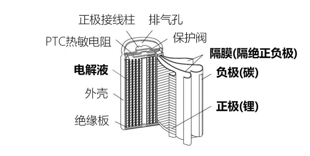 隔膜是液态锂电池(一般结构见下图)中的关键内层组件之一,主要作用:将电池的正、负极分隔开来,防止两极接触而短路,同时具有能使电解质离子通过的功能,其性能决定了电池的界面结构、内阻等,直接影响电池的容量、循环以及安全性能等特性,性能优异的隔膜对提高电池综合性能具有重要作用。