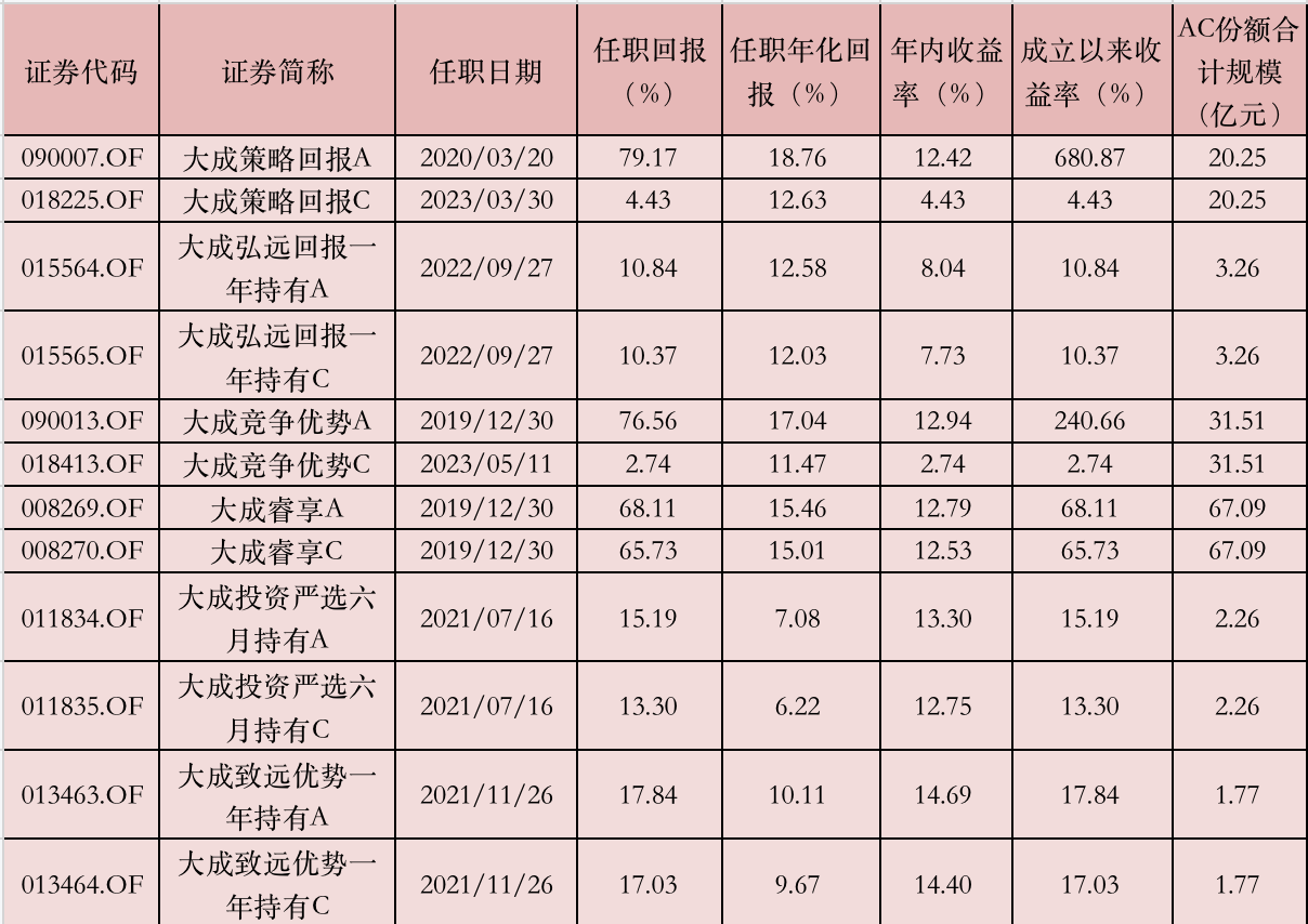 此前,徐彦旗下的另3只基金大成策略回报混合、大成竞争优势混合、大成睿享混合,已于7月10日宣布暂停100万元以上大额申购。