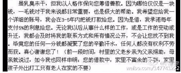 2012年,北京化工大学学生许涛通过微博募捐拯救患白血病的父亲,许涛说的是借,并承诺3至5年内还款,几个月的时间,许涛募集到50万元。