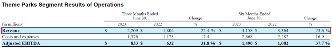 NBC环球旗下环球影城主题乐园的业绩表现同样良好,在第二季度实现收入22.09亿美元(约合人民币159.30亿元),同比增长22.4%,上半年的总收入增长率则达到23.6%。