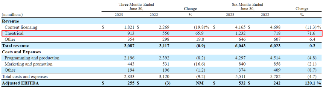 康卡斯特Q2院线收入9.13亿美元,同比增长65.9%,半年收入12.32亿美元,同比增长71.6%。