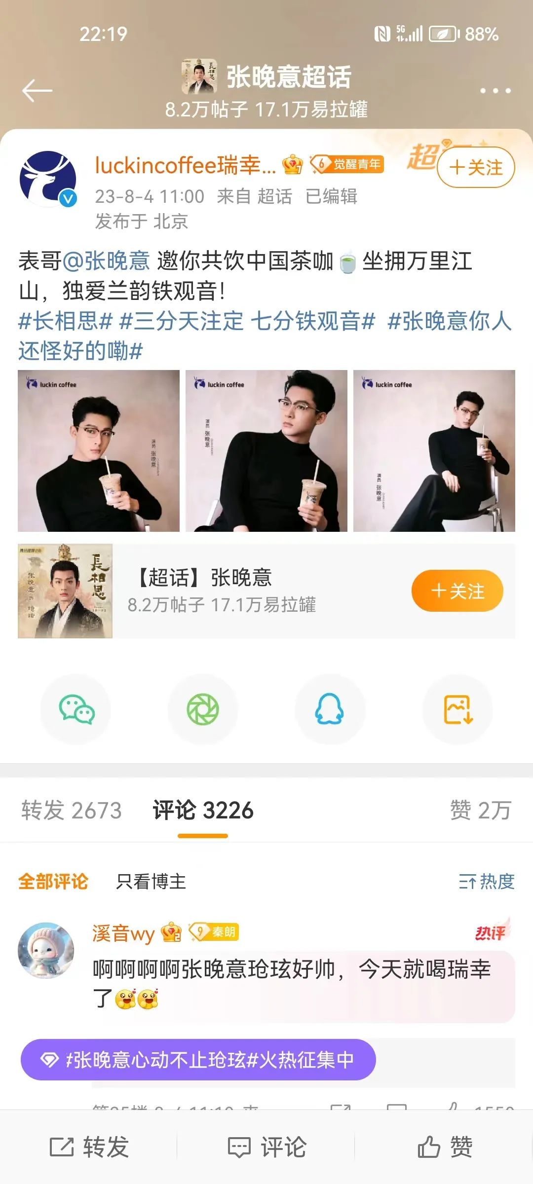 相对之下,瑞幸与因《长相思》爆火而出圈的张晚意合作推广兰韵铁观音获得了不少好评。而这源自于,张晚意早期便凭借《觉醒年代》中陈延年一角获得了不错的国民度,如今又以出色演绎暑期爆款剧《长相思》中玱玹一角而被称为角色吃演员红利第一人,兼具国民度与口碑的艺人获得新商务,自然是大众喜闻乐见的事情。即便是正因冰块多而在风口浪尖的瑞幸,也成功借此契机拉了一波好感,这也进一步说明选好合作对象是奶茶品牌进军娱乐营销的关键一着。