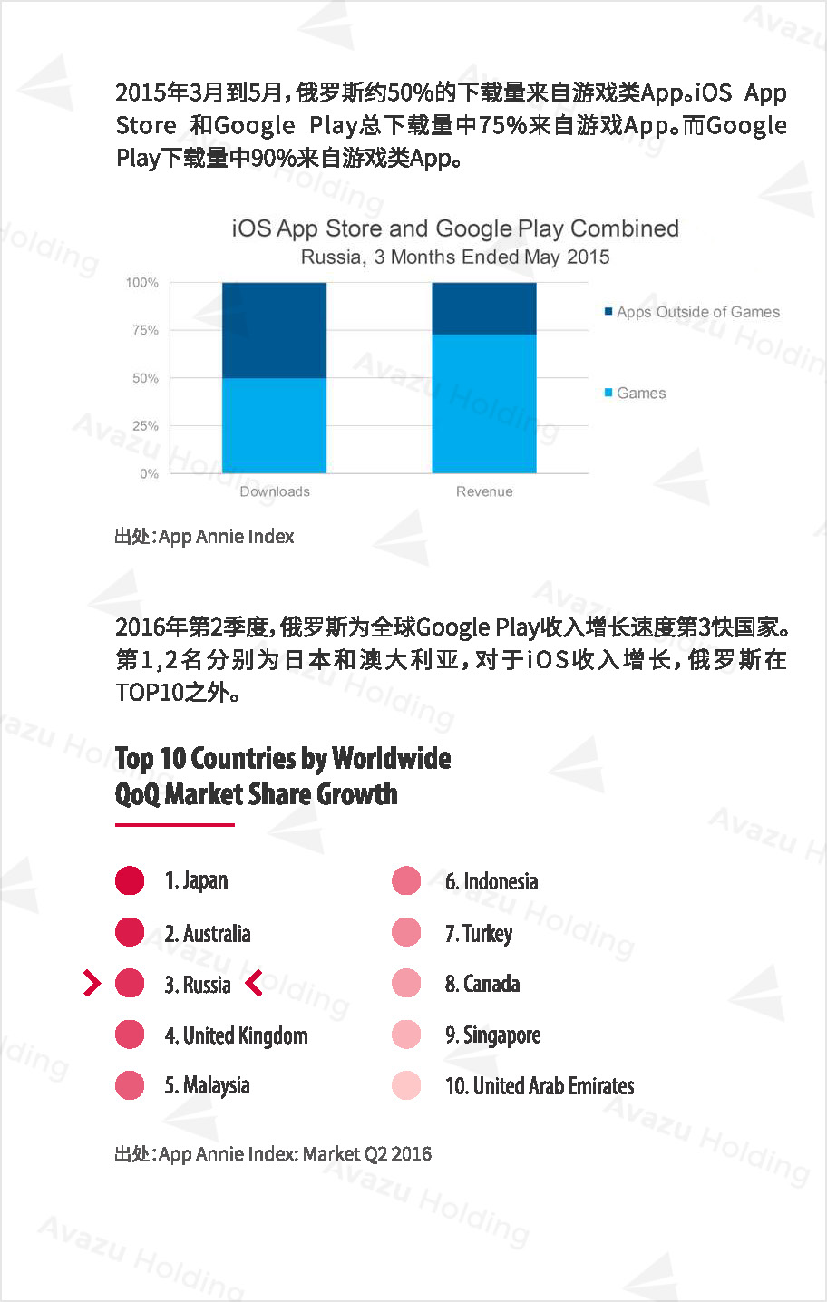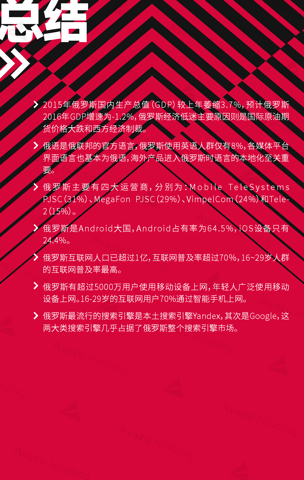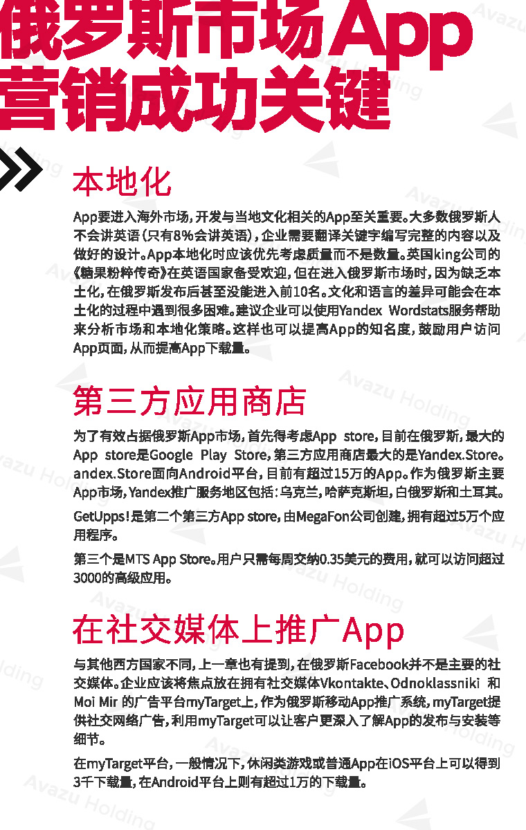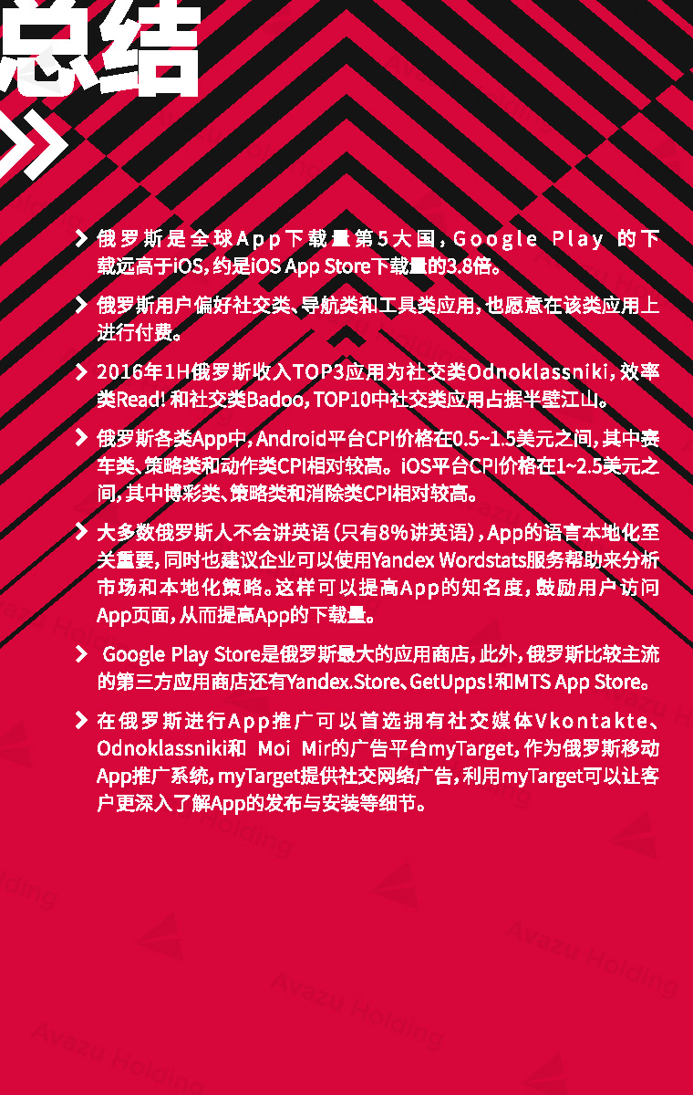 近期,技术驱动的跨国互联网控股集团Avazu Holding从行业环境、社交媒体、App市场、互联网广告、在线游戏(包括移动游戏)电商以及在线支付,七大方面,对俄罗斯的互联网产业进行了相关介绍和分析。