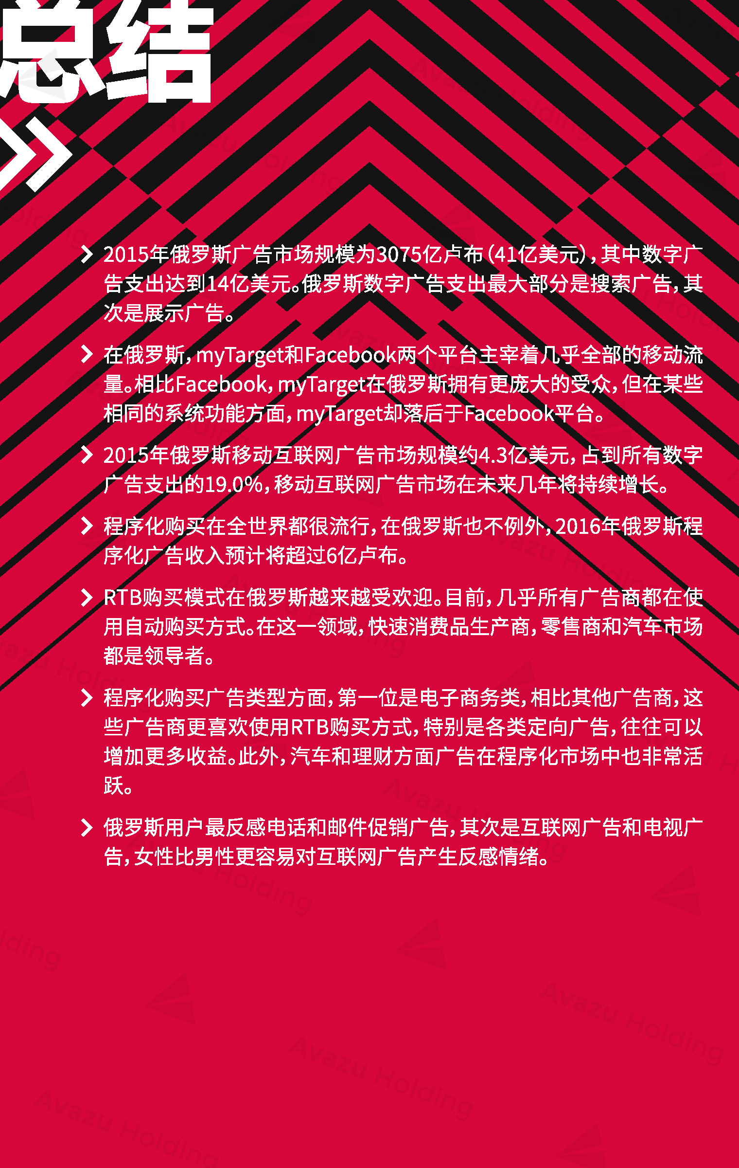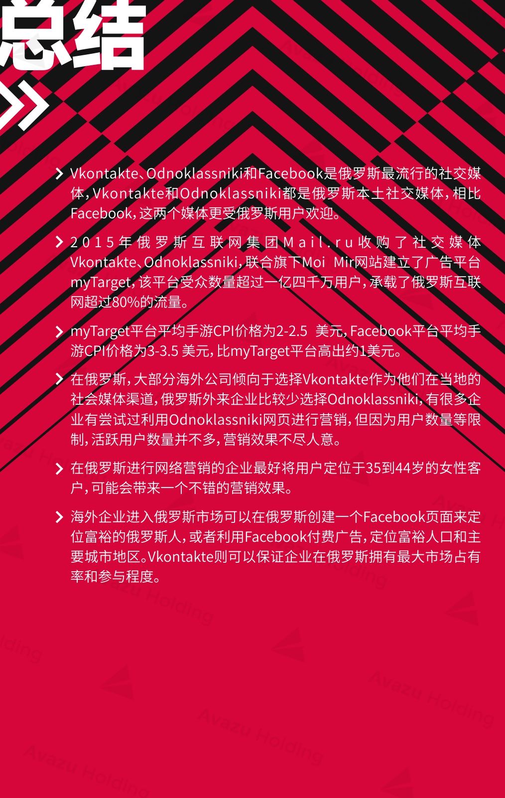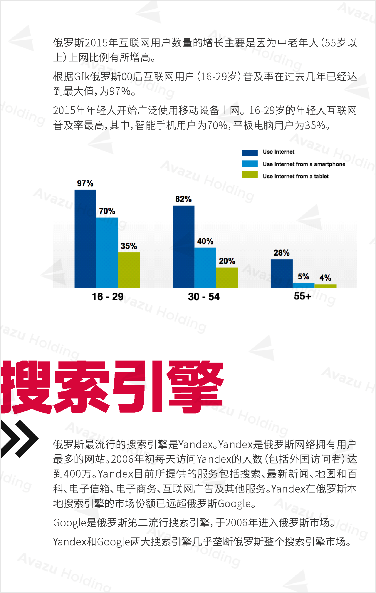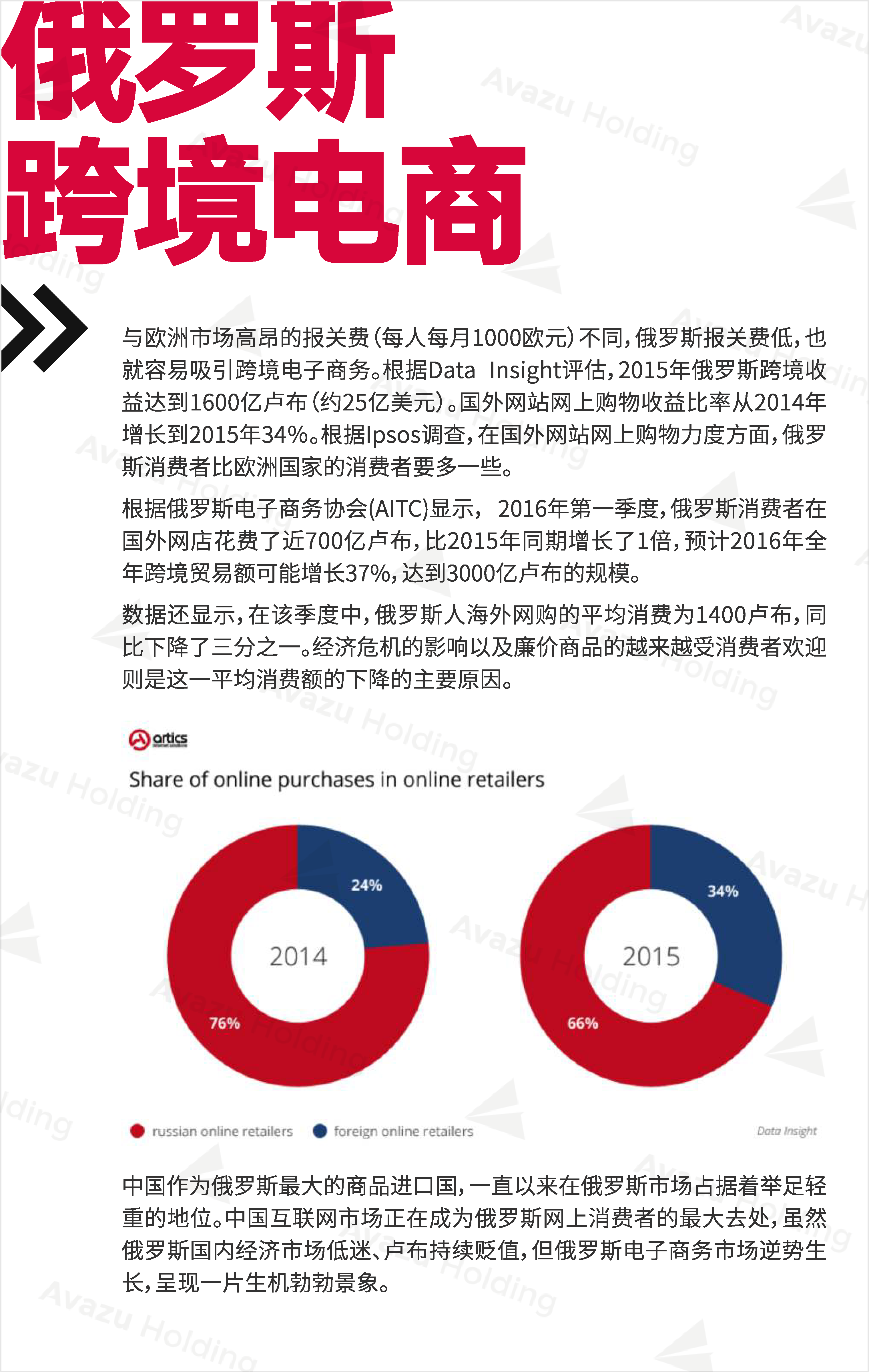 近期,技术驱动的跨国互联网控股集团Avazu Holding从行业环境、社交媒体、App市场、互联网广告、在线游戏(包括移动游戏)电商以及在线支付,七大方面,对俄罗斯的互联网产业进行了相关介绍和分析。