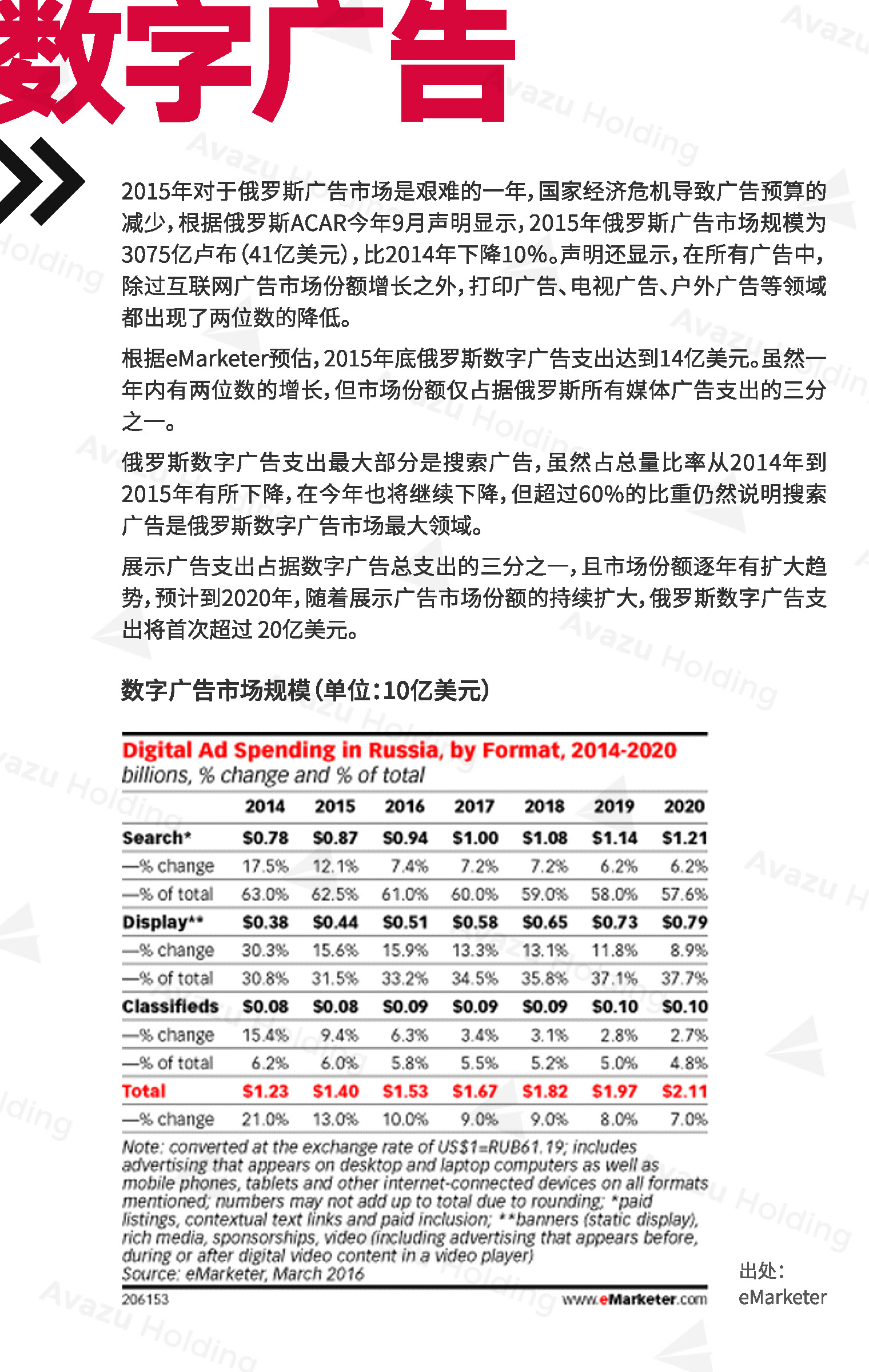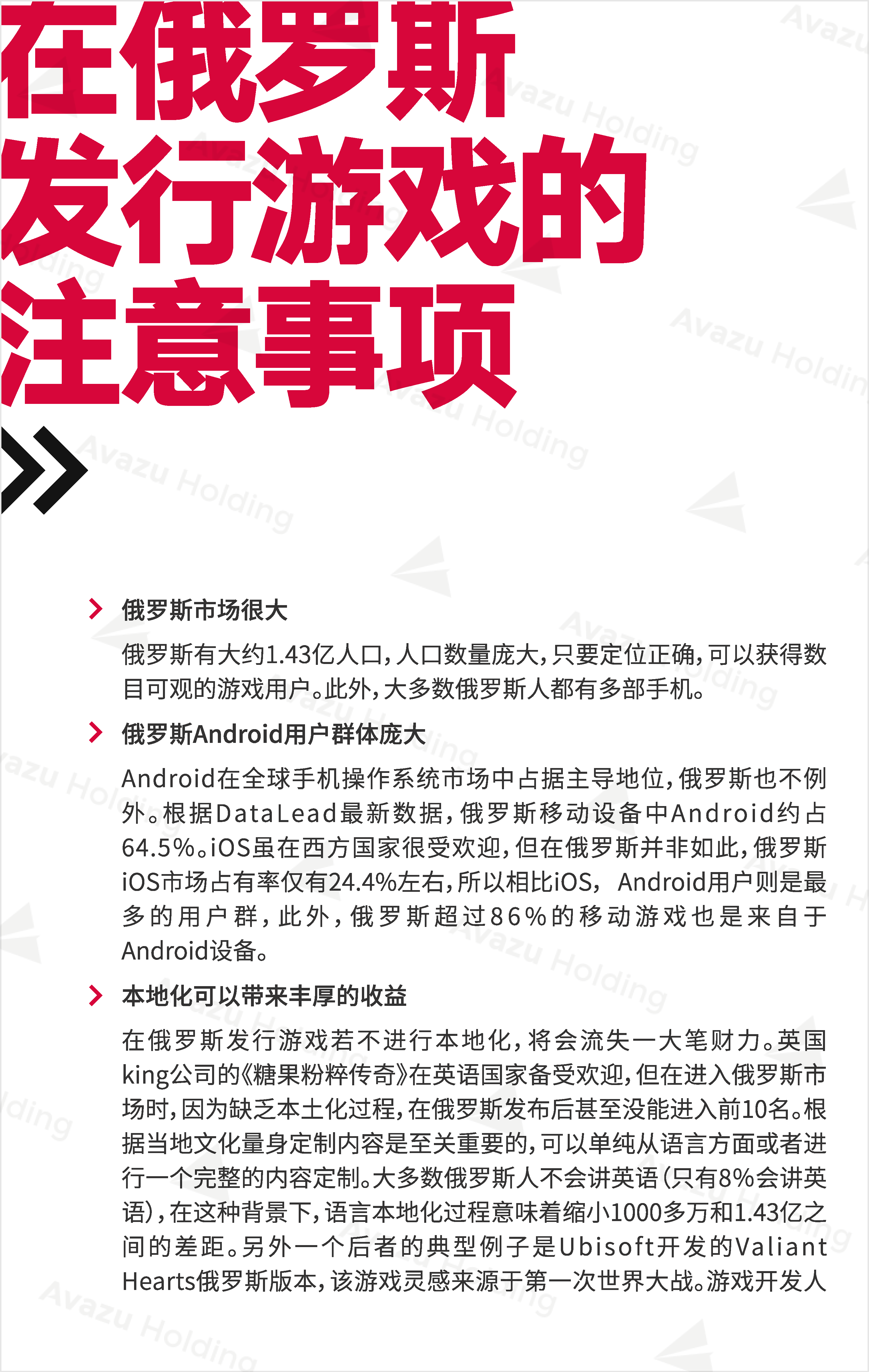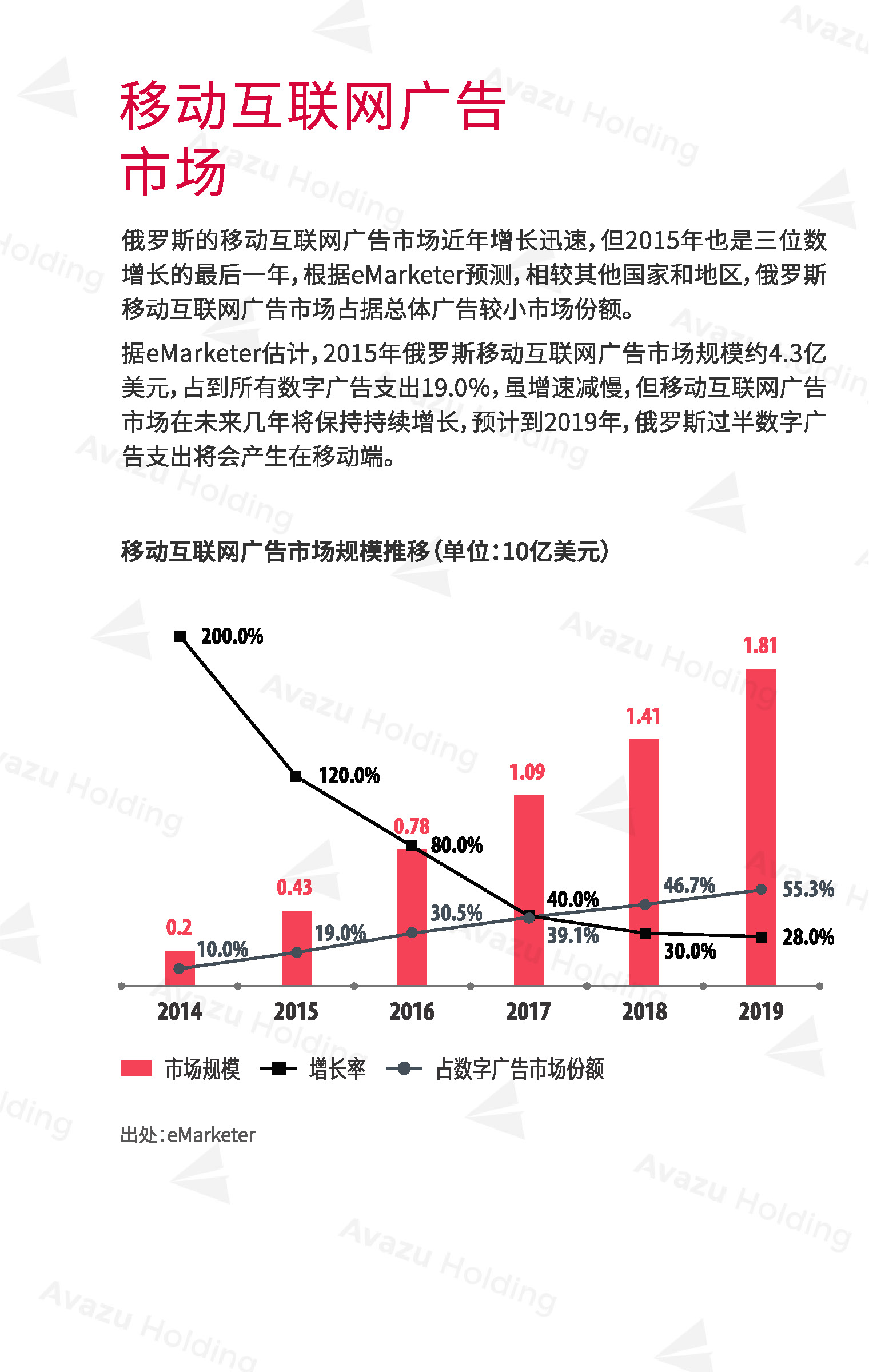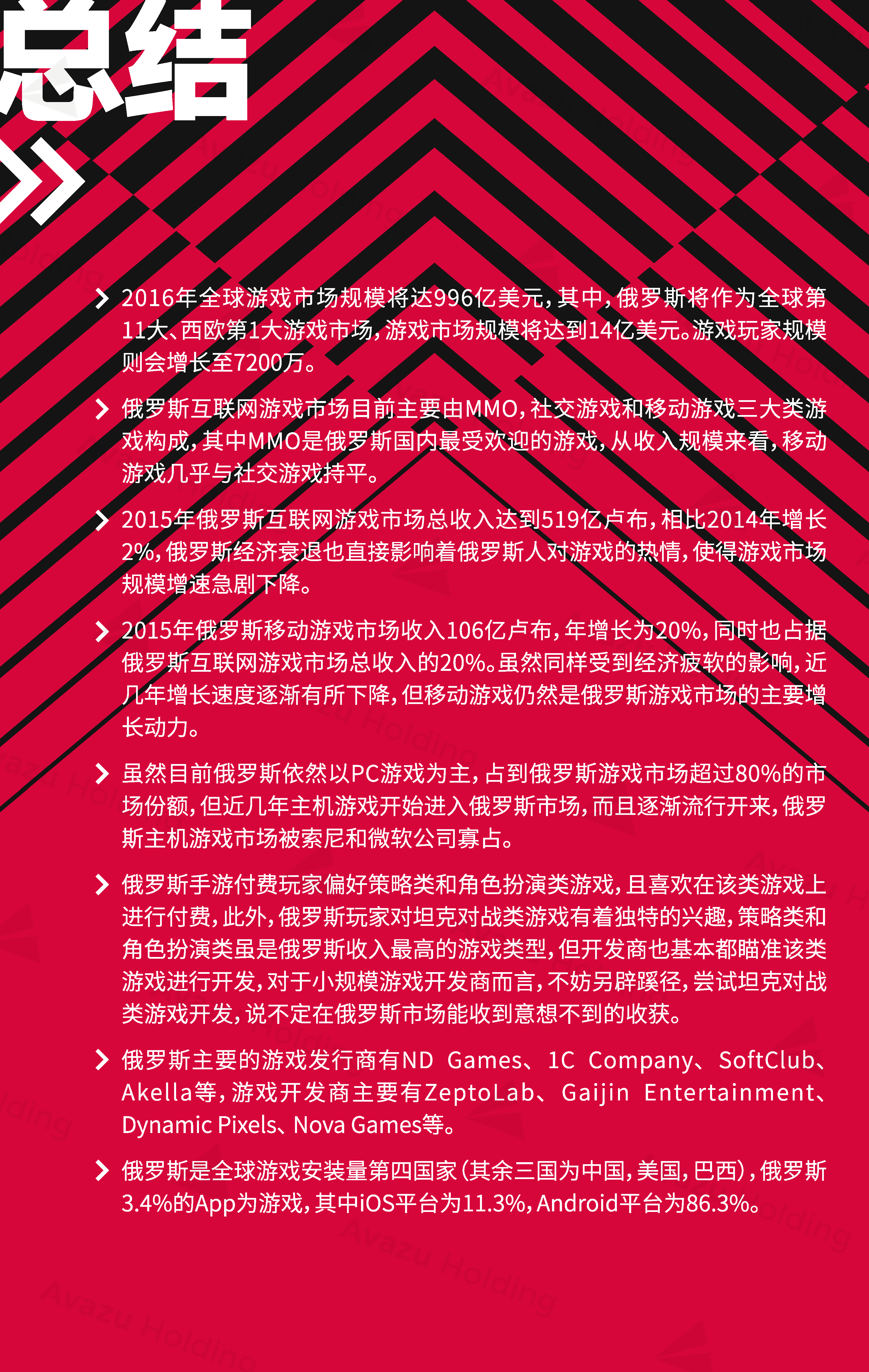 近期,技术驱动的跨国互联网控股集团Avazu Holding从行业环境、社交媒体、App市场、互联网广告、在线游戏(包括移动游戏)电商以及在线支付,七大方面,对俄罗斯的互联网产业进行了相关介绍和分析。