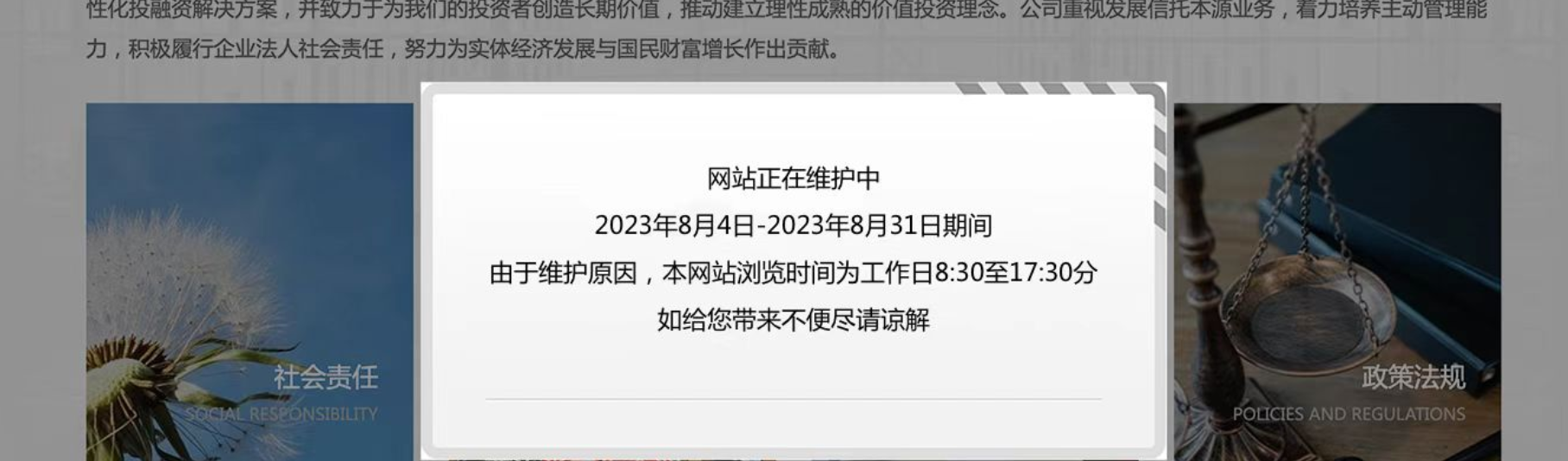 界面新闻记者就此向中融信托方面同时求证此次涉及的上市公司信托产品逾期兑付问题,但截至发稿尚未获回复,公司官网也因系统维护无法进入。