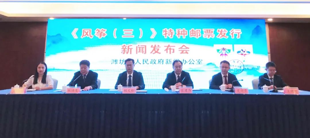 8月11日,潍坊市人民政府新闻办公室组织召开《风筝(三)》特种邮票发行新闻发布会。潍坊市文化和旅游局局长权文松,潍坊国际风筝会综合服务中心主任张建伟,潍坊市邮政管理局局长杜焕友,中国邮政集团有限公司潍坊市分公司总经理史付贵,中国邮政集团有限公司潍坊市分公司副总经理王晓君向大家介绍有关情况并回答记者提问。