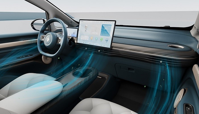 新车定位紧凑型纯电动车,整车风格偏向圆润从而拓宽受众群体。部分细节如隐藏式门把手和D柱以及后尾的小鸭翼则适当提升了车辆动感和质感。