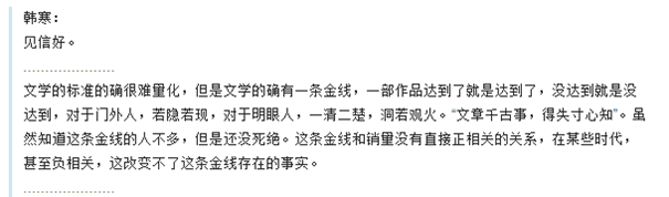 几年前,在韩寒代笔门事件中,冯唐也曾在他的公开信中提出“文学金线论”,后来有人把这个说法拿到内容营销层面,说金线之上,价值连城,金线之下,一文不值。所有的这些说法都对,但是从内容营销的操作角度看,这些若隐若现的金线标准很难捉摸。