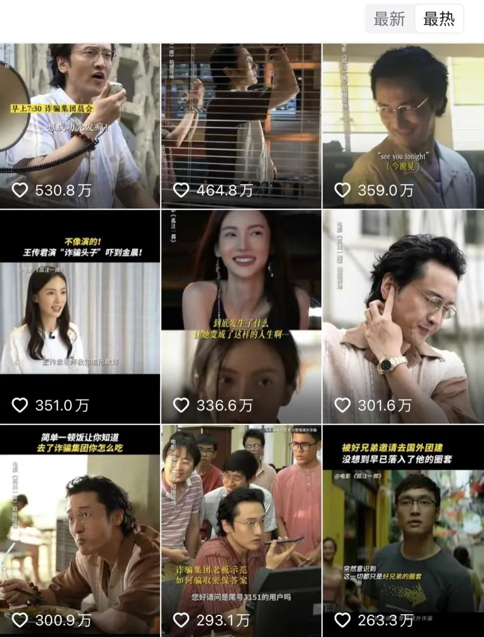 可是电影是一个120分钟左右的“长视频”,相比几分钟的“短视频”,自然在内容创作层面有极大的不同,这是常识。即便《孤注一掷》根据很多真实案例,但整体上电影有远比短视频多得多的“虚构”。另外,不少观众认为电影将最“精华”的部分放在了短视频平台从而吸引观众入场,但是完整的电影观感一般,这本身也是一种“诈骗”。