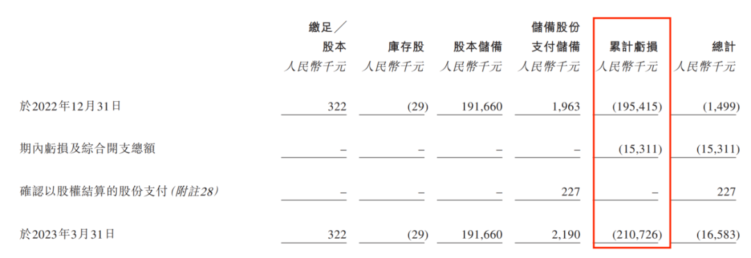 截至2023年3月31日,盛禾生物已经累计亏损2.11亿元。