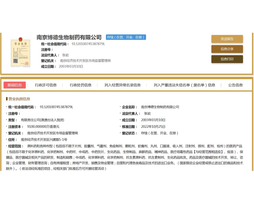 值得注意的是,国家信用信息企业公示网官网披露信息显示,南京博德是一个生物制药企业,但在盛禾生物的招股书中,显示这家企业的背景却是“一家位于南京的公司,主要从事物业租赁及销售机器及设备”。